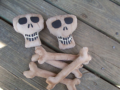 Primitive Halloween Grungy Skull & Cross Bone Ornies Bowl Fillers Decor Set of 6