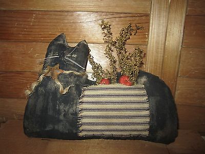 Primitive Black Cat Doll - ticking pocket - pumpkins - Halloween/Fall