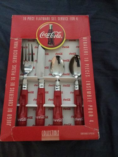 Title (ebay affiliate link): Gibson COCA COLA 16 Piece Flatware Set Service for 4 Bottle Handles, Never Used