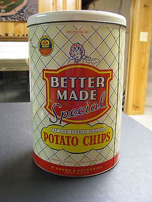 Title (ebay affiliate link): Vintage Better Made Special Potato Chips Tin Cross & Peters Co One Pound Old Can