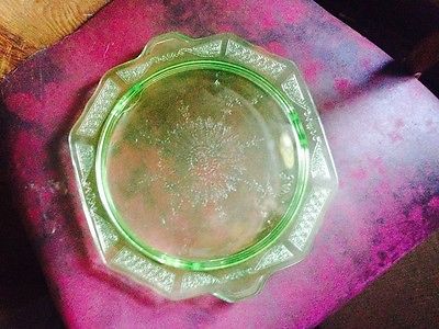 VINTAGE GREEN DEPRESSION GLASS CAKE PLATE
