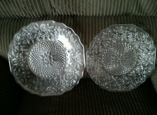 Title (ebay affiliate link): Indiana Glass Pineapple and Floral! 2 Crystal Plates 8 3/8" & 9 3/8" L@@K!