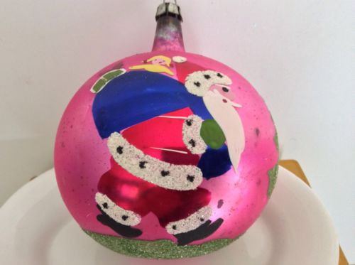 Title (ebay affiliate link): Antique Glass Polish Christmas Ornament - Large Pink Ball With Santa