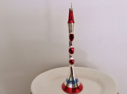 Title (ebay affiliate link): Antique Glass Christmas Ornament - Patriotic Red, White & Blue Horn