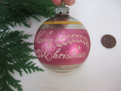 Vintage Pink Mercury Glass Shiny Brite Stencil Stripe Merry Christmas Ornament