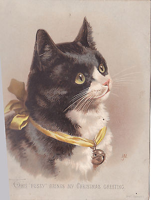 Title (ebay affiliate link): 1884 Victorian Christmas Card of Black and White Cat with Bell Measures 5 by 6