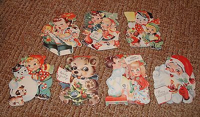 Set of 7 Vintage 1940's Christmas Greeting Ornament Cards Santa Children Snowman