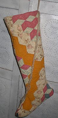 Stocking Vintage Quilt 1900 Early Tumbling Blocks Petite~Hand Stitched 21"x 7"