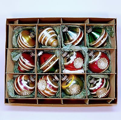 Title (ebay affiliate link): 12 vintage Shiny Brite ornaments 6 double indents 6 tops in box