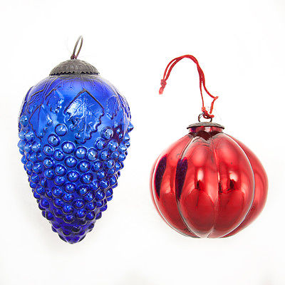 Title (ebay affiliate link): 6 Rare Vintage Mercury Christmas Ornaments Red Scalloped Globe & Bunch Of Grapes