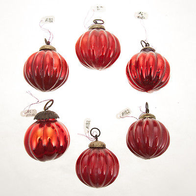 6 Rare Vintage Mercury Glass Hand-Blown Christmas Ornaments Red Scalloped Globes