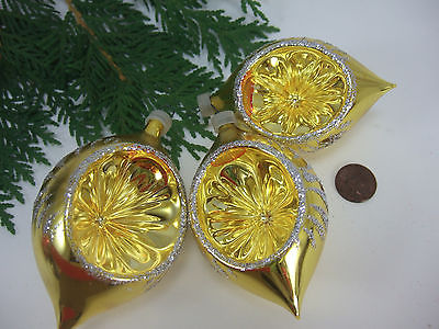 3 Vintage Mercury Glass Gold Starburst Indent Teardrop Christmas Ornament
