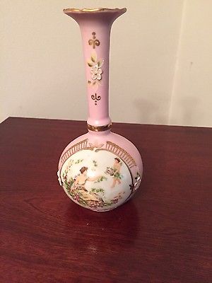Title (ebay affiliate link): Neoclassical Porcelain Pink Vase with Maiden and Putti in a Bucolic Landscape