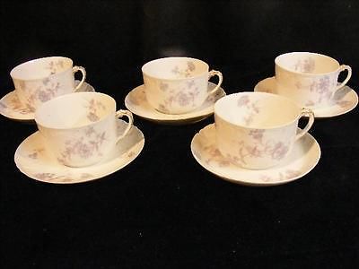 SET 5 HAVILAND LIMOGES LARGE FLAT CUPS & SAUCERS SCHLEIGER #378 BLUE FLORAL 1890