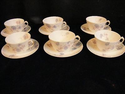 SET 6 CHAS. HAVILAND LIMOGES TEA CUPS & SAUCERS SCHLEIGER #378 BLUE FLORAL 1890