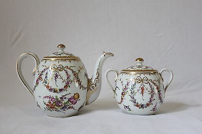 The Bailey Banks and Biddle Co Dresden Teapot and Sugar Bowl Hand Painted Broken