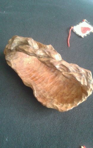 Vintage Hand Carved Wood Basket Bowl Leaf Shaped