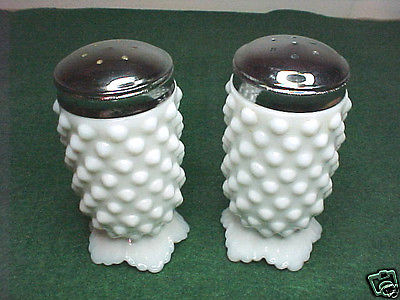 Title (ebay affiliate link): Vintage Fenton Hobnail Pedestal Salt & Pepper Shakers Milk Glass Mint Condition