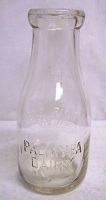 VINTAGE PALMYRA NY PALMYRA FARM DAIRY MILK GLASS BOTTLE 1 PINT