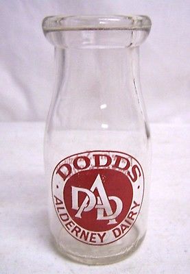 VINTAGE DODD'S ALDERNEY FARM DAIRY MILK GLASS BOTTLE 1/2 PINT