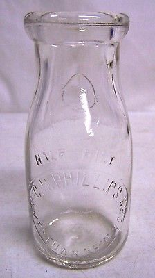 VINTAGE JAMESTOWN NY C.H. PHILLIPS FARM DAIRY MILK GLASS BOTTLE 1/2 PINT
