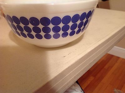 Vintage Pyrex Blue Polka Dot Milk Glass Mixing Bowl 2.5 Quart