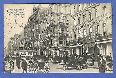 Germany Gruss Aus Berlin Hotel Bauer Kodak Sign Cars Bus People Postcard 1900s
