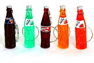 LOT 5 BOTTLES BIG COKE/PEPSI/FANTA COLLECTIBLE MINIATURE KEY RINGS KEY CHAINS