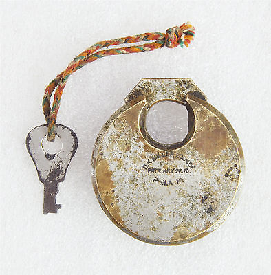 1850s Original Antique Hand Crafted Brass Round Pad Lock DK Miller Lock Co USA