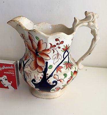 antique pottery jug 1800s repaired floral probably english no mark masons ?