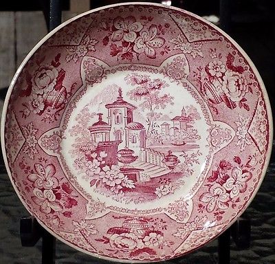 Title (ebay affiliate link): C.1830's Staffordshire Red Transferware plate/bowl Romantic Landscape "Deleware"