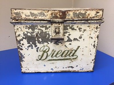 Title (ebay affiliate link): *KREAMER ANTIQUE Tin Kitchen BREAD BOX~VERY Vintage Shabby Chic Chipping Paint*