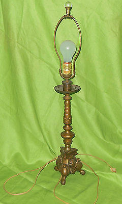 Vintage Antique Ornate Sculpted Brass Bronze Footed Table Lamp Cherub Faces
