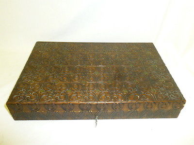 UNIQUE VINTAGE POSSIBLY ANTIQUE CARVED WOOD BOX WITH KEY ~MUST SEE~