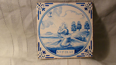 #2 - Antique Figural Dutch Delft Tile JESUS PRAYING Luke 22:43