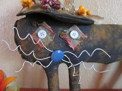 Primitive Extreme Grungy Fall Halloween Kitty Kat Witch Hat Ornie Sitter Decor
