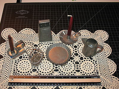 Title (ebay affiliate link): Assorted Primitive Punched Tin Metal Items.. Grater, Candleholder, Pitcher,