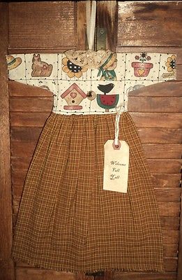GRUNGY~PRIMITIVE WALL~CUPBOARD~DOLL DRESS HOMESPUN RUST SUNFLOWER FOLK ART DECOR