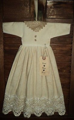 Title (ebay affiliate link): GRUNGY~PRIMITIVE WALL~CUPBOARD~DOLL DRESS ECRU FANCY EMBROIDERY FOLK ART DECOR