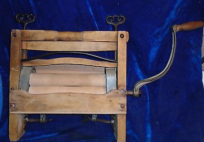 ANTIQUE PRIMITIVE WOODEN CLOTHES HAND CRANK WRINGER BALL BEARING ROLLERS