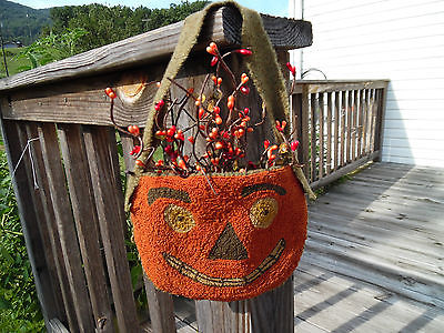 Title (ebay affiliate link): Primitive Punchneedle Pumpkin Jack O Lantern Ditty Bag Treat Bag Handmade