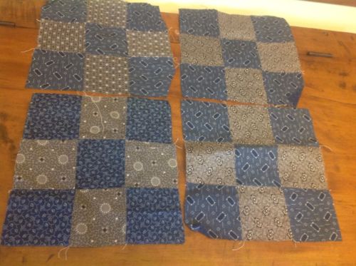 Title (ebay affiliate link): Moprimitivepast Antique Indigo Blue Mourning Black Calico Quilt Blocks Lot Of 4