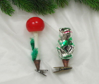Title (ebay affiliate link): 2 x Vintage Glass Christmas Ornaments, Toadstool,Frog, on the rack