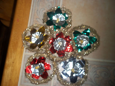 6 Antique Vintage garland Christmas Tree Ornaments aluminum flowers Hand made