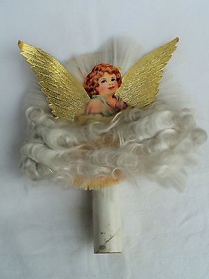 Vtg Antique German Die-Cut Spun Glass Foil Wings Angel Christmas Tree Topper
