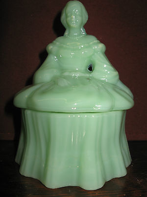 Title (ebay affiliate link): Jadeite green milk glass doll powder / jewelry box dresser tray holder girl jade