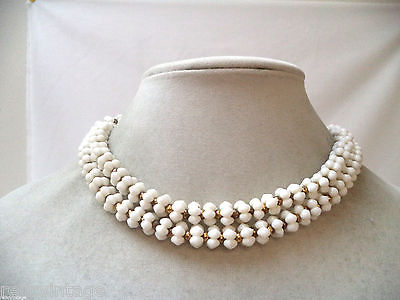 GORGEOUS VINTAGE ESTATE GOLD TONE WHITE MILK GLASS BEADED NECKLACE!!!! 1705L