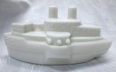 BATTLESHIP USS MAINE ANTIQUE MILK GLASS DISH