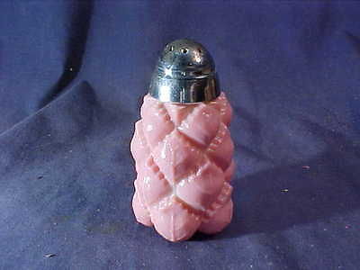 19thc VICTORIAN Era PINK MILK GLASS w DIAMOND Quilted Surface SALT SHAKER