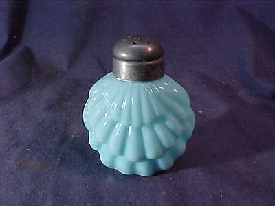 19thc VICTORIAN Era BLUE MILK GLASS w SEA SHELL Surface Design SALT SHAKER